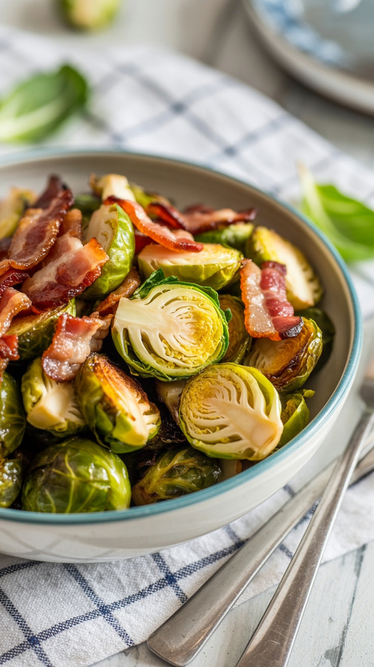 4. Irresistible Air Fryer Brussels Sprouts with Bacon