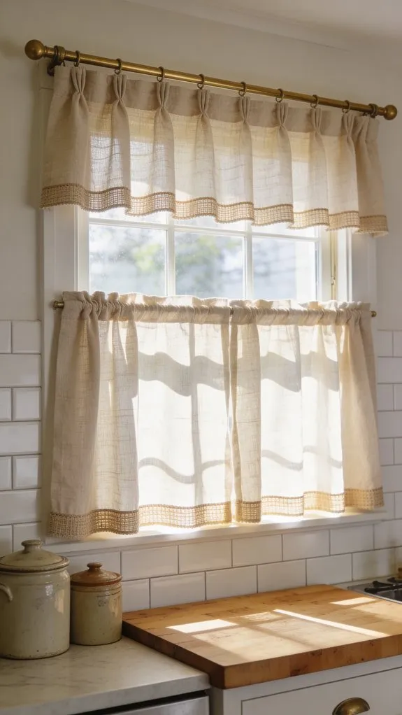Replace heavy curtains with light, airy linen café curtains. They soften natural light, add texture, and create a relaxed, inviting atmosphere.