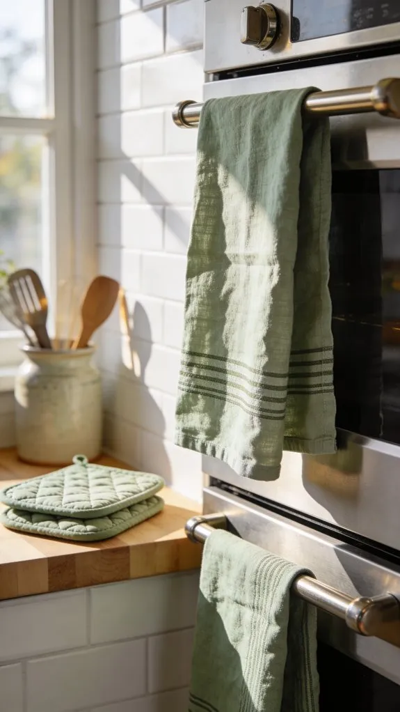 New dish towels, oven mitts, and pot holders can instantly brighten your space. Coordinated colors or patterns help tie everything together and give your kitchen a more curated feel.