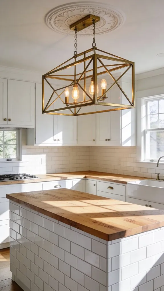 Swapping out a standard ceiling light for a pendant or decorative fixture can elevate your kitchen’s entire design. It adds visual interest and helps define the space.