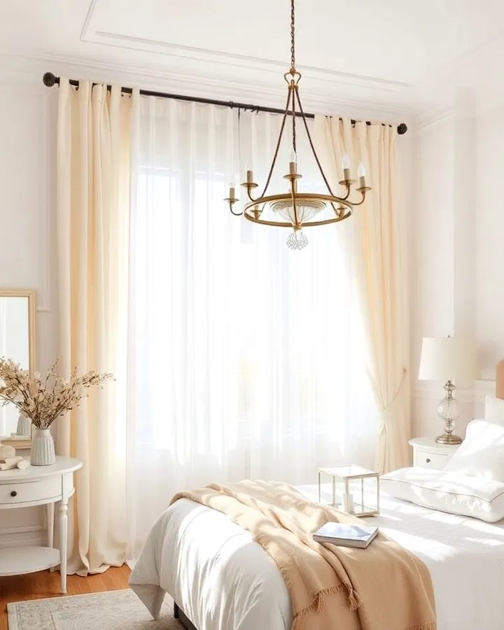 For a more layered look, you can pair sheer cream curtains with thicker blackout panels in a similar tone. This not only adds depth but also improves functionality. The gentle interplay of light and fabric enhances the serene atmosphere, making your bedroom feel like a peaceful retreat.