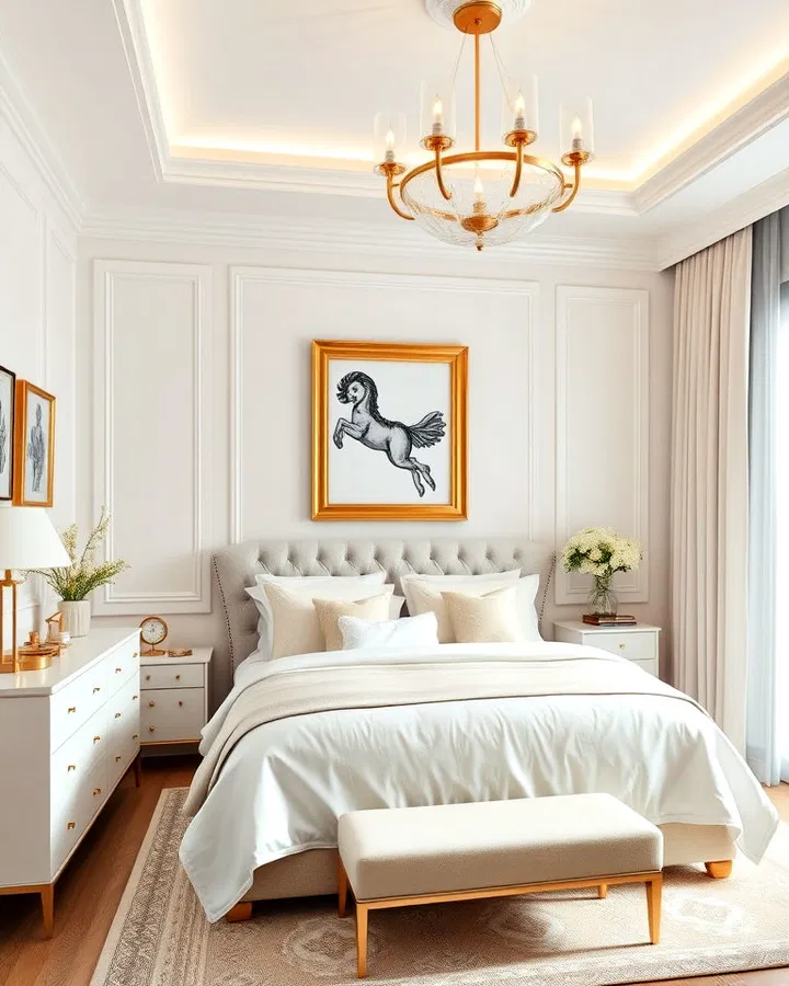 Gold accents can elevate a white and cream bedroom by adding a hint of luxury. The key is to keep it subtle—small touches like lamp bases, picture frames, or decorative trays are enough to make an impact.