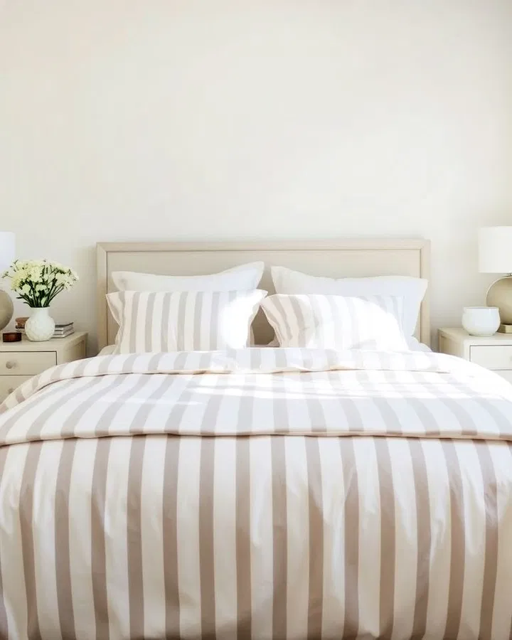 If you want to add a subtle pattern without disrupting the neutral theme, striped bedding is a great choice. Alternating white and cream stripes create visual interest while maintaining a clean and cohesive look.