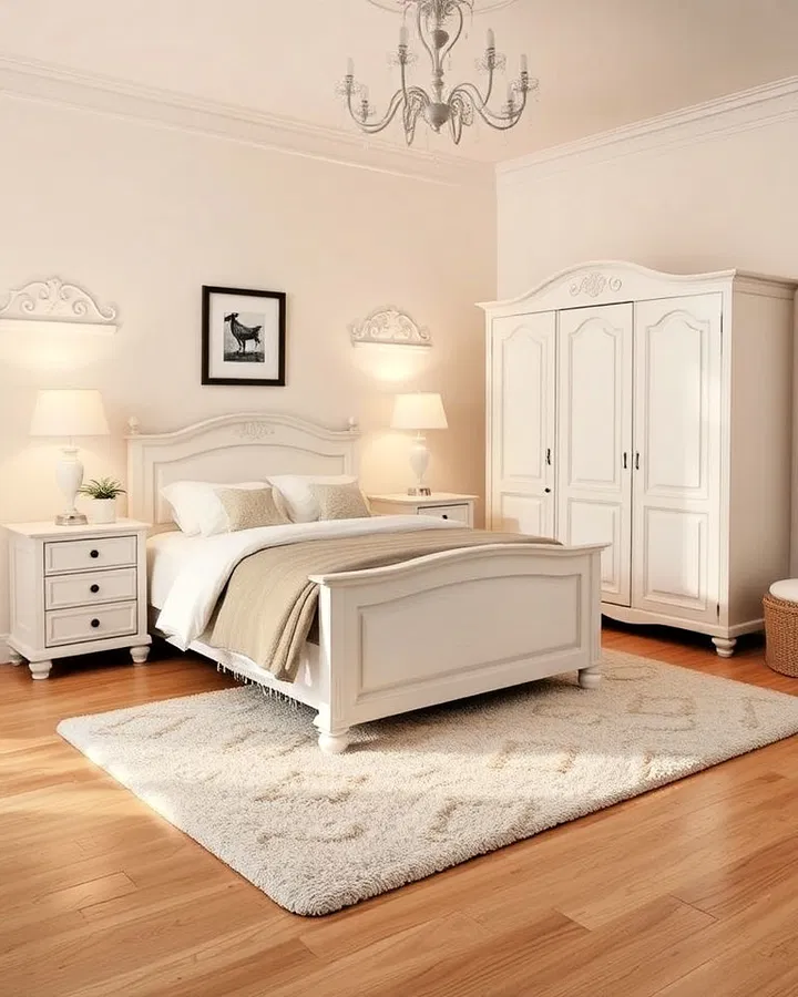 White wooden furniture brings a classic and timeless charm to any bedroom. Pieces like bed frames, nightstands, and dressers in white finishes help reflect light and make the space feel larger.