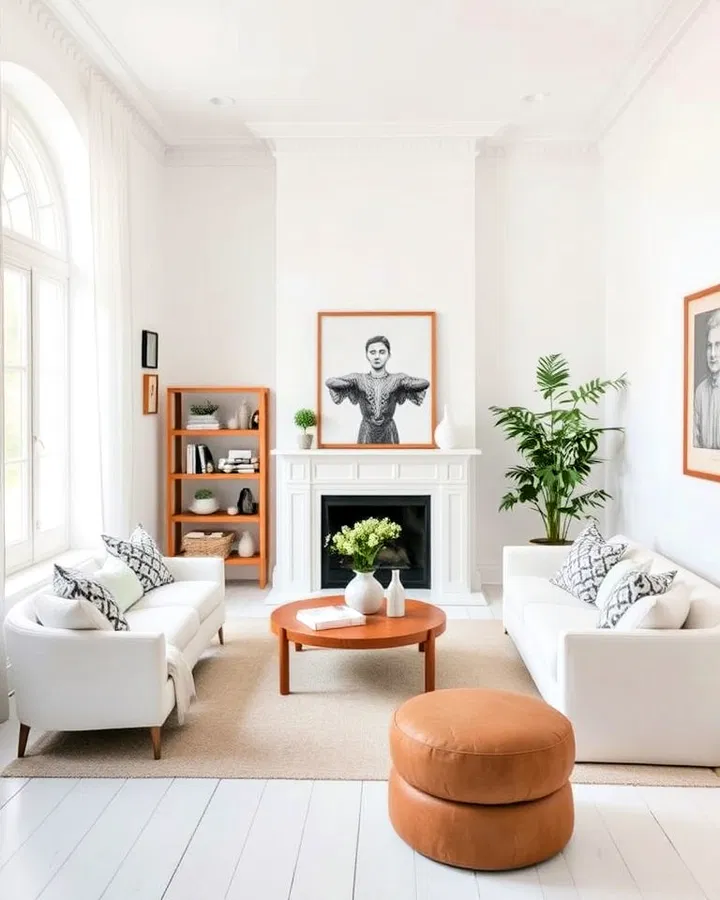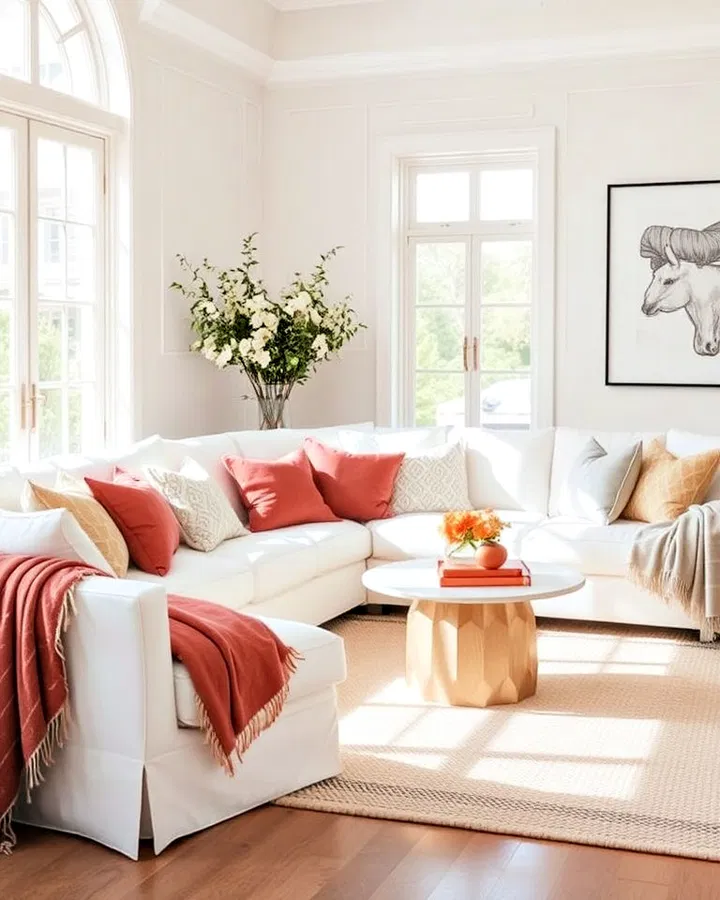 Layer in contrast with darker flooring, bold art, or textured centerpieces.