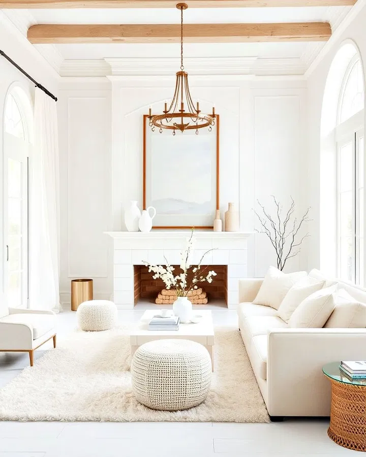 Mix warm whites, cool whites, and off-whites. Then layer textures—linen, wool, boucle—to keep it from looking flat.