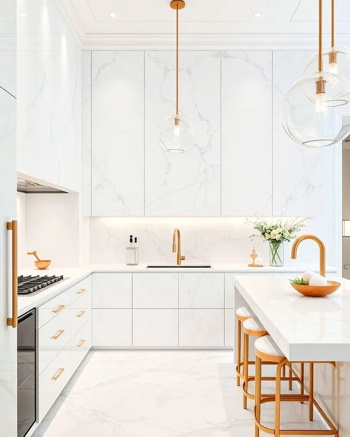 Break up the look with wood accents, bold hardware, or a contrasting island so it doesn’t feel too uniform.
