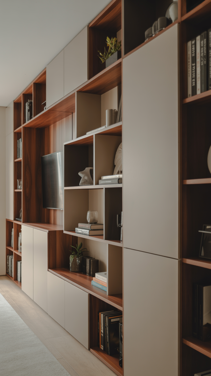Flexible built-in walls are growing in popularity. They can incorporate open shelving, closed storage, benches, and media zones in one cohesive unit. Built-ins not only maximize space but also provide architectural permanence and visual harmony.