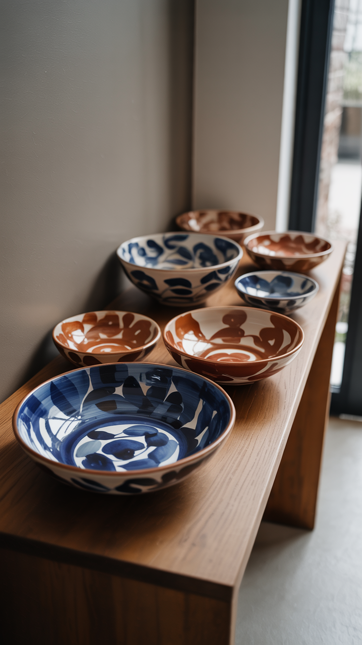 • Handcrafted decor: pottery, ceramics, or woven textiles