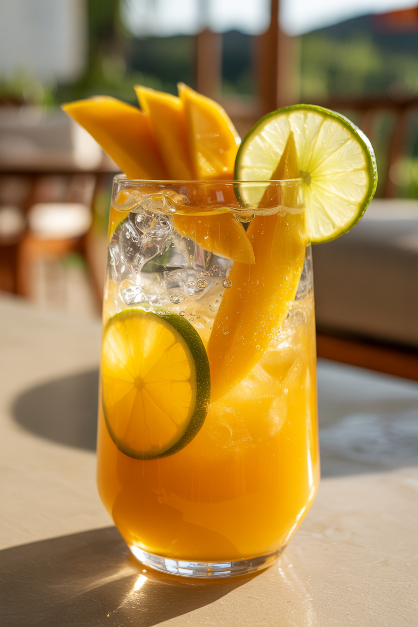 Why it works: Ripe mango provides body and natural sweetness while lime brightens, sparkling water adds lift so it doesn’t feel heavy in heat.