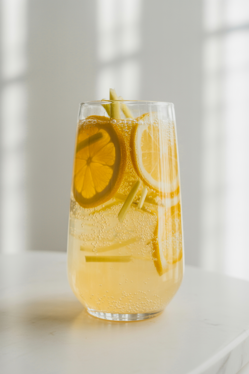 Lemon Ginger Fizz: Fresh ginger syrup, lemon juice, and soda, bright and slightly spicy.