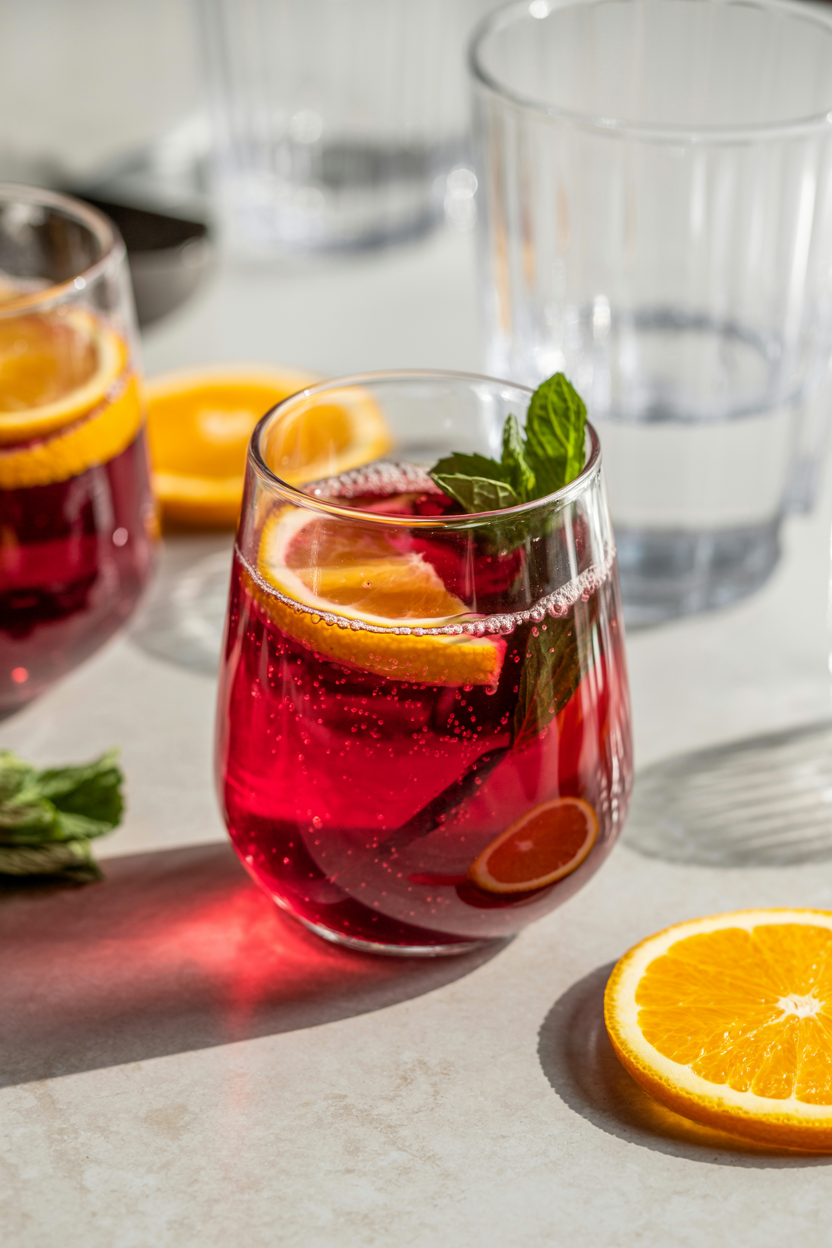 Why it works: Hibiscus is tart and cranberry-like: orange adds citrus sweetness and soda lifts the whole drink into a spritz.