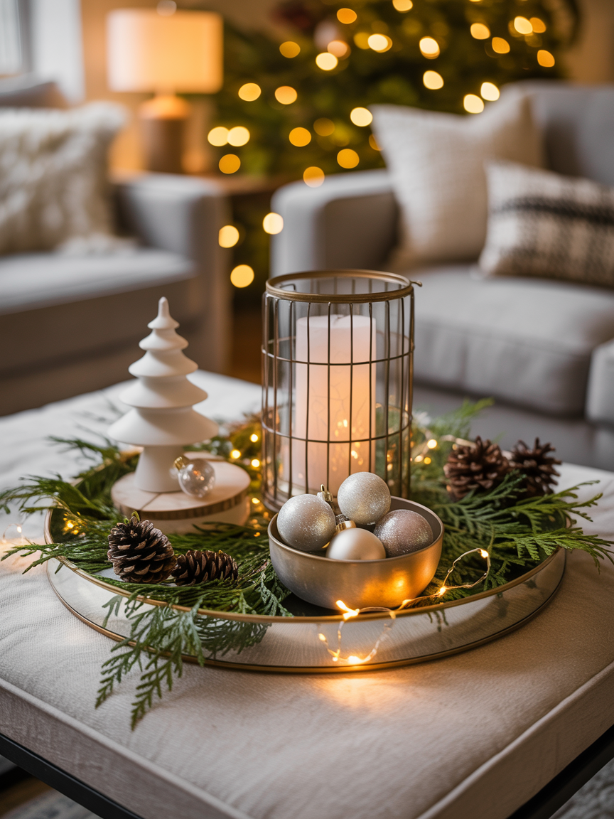 - The Anchor: Introduce a prominent piece that draws the eye. This might be a striking candle lantern, a low-profile vase brimming with fresh winter greenery, or a carefully stacked pair of holiday-themed coffee table books. This element provides height and a focal point.