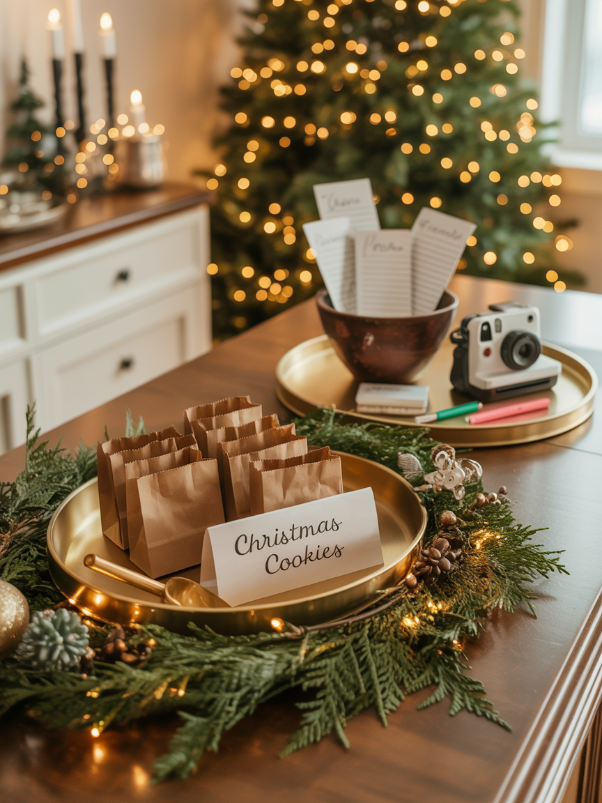 - Photo Moment Tray: Arrange a small instant camera, extra film, and a marker on a tray near the Christmas tree. Invite visitors to snap a photo and sign it, creating a playful and heartwarming record of everyone who shared your home during the holidays.