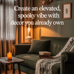 Start by shopping your own house, bring in natural textures, play with shadows, and add just a few intentional accents. You’ll have a home that feels mysterious, cozy, and sophisticated — perfect for October nights.