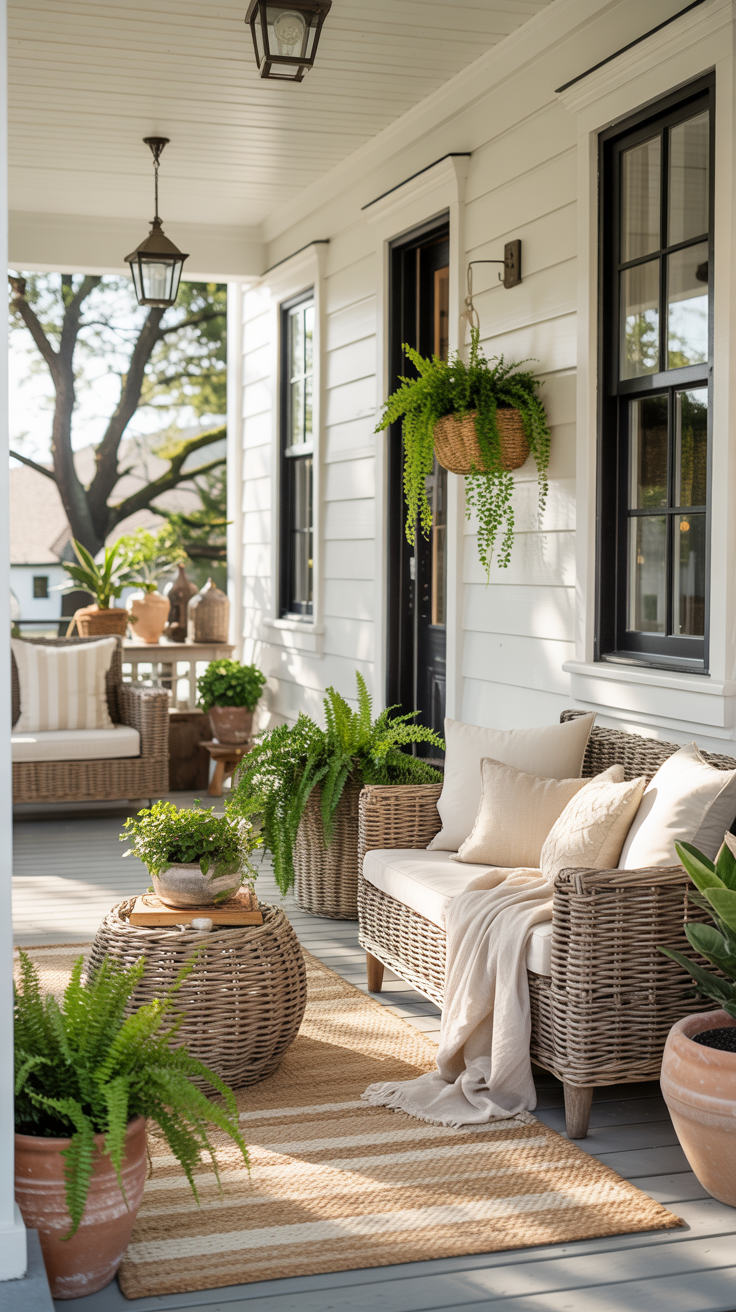 Plants bring life—skip them, and the porch looks flat.