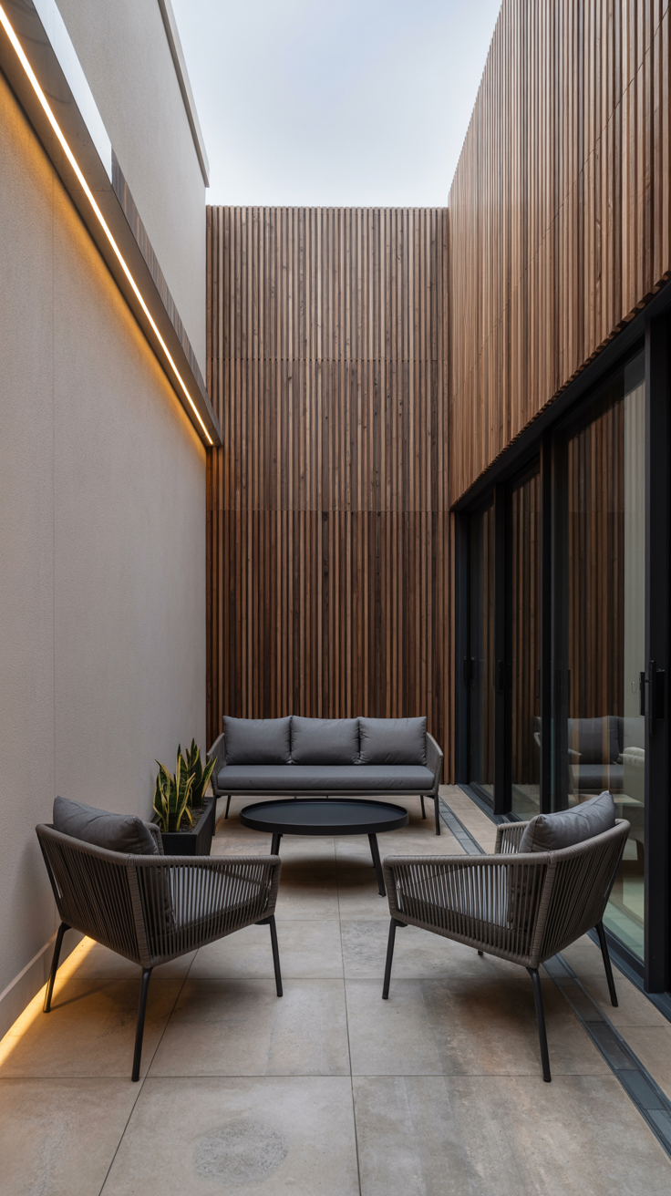 In design, “negative space” refers to the empty areas around and between furniture and objects. In a narrow patio, negative space is just as important as the furniture itself. It is what allows the eye to rest and the space to breathe.