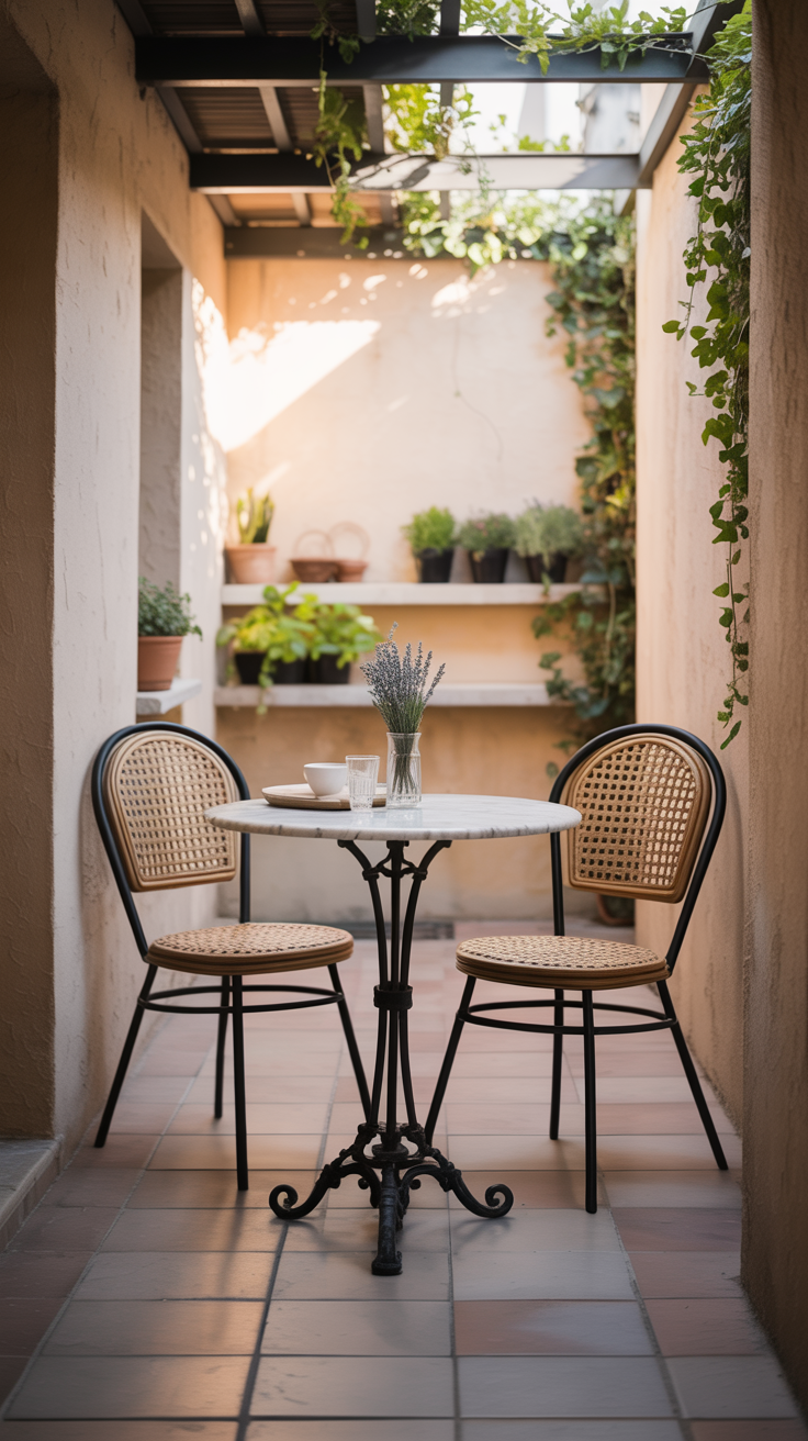 Instead, embrace the charm of a bistro set. A small, round table with two or four chairs is perfect for morning coffee or an intimate dinner, and its circular shape breaks up the rigid, straight lines of the narrow patio. If you absolutely must seat more people, look for a narrow, counter-height pub table that can sit flush against the railing or wall, with backless stools that tuck completely underneath when not in use.