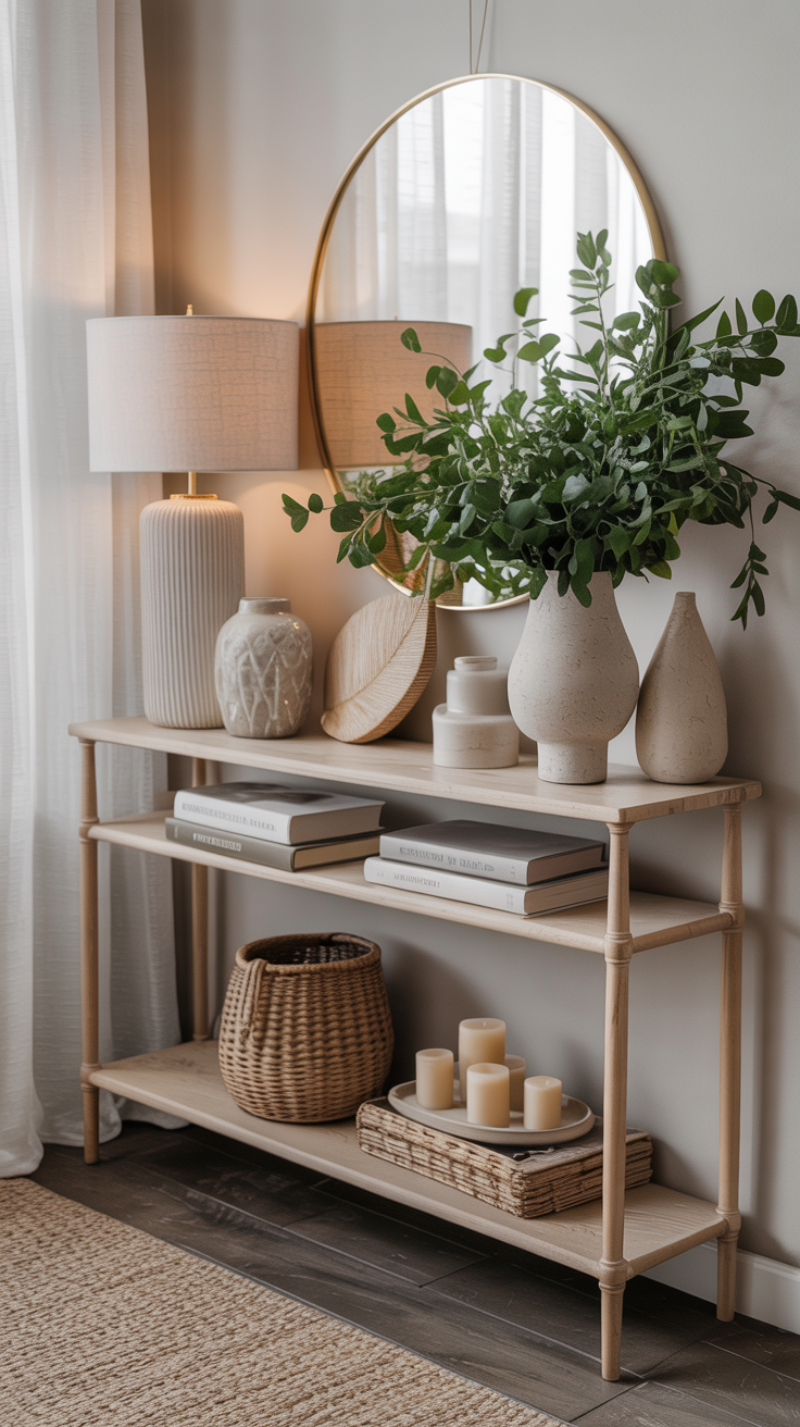 Switching up your console table styling seasonally keeps it fresh without overcomplicating your design:
