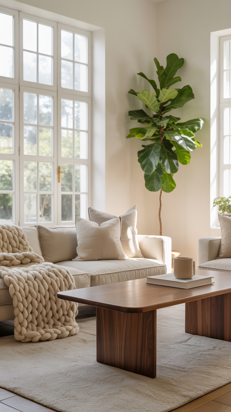 Example: A minimalist living room with a neutral sofa can feel cold on its own. Add a wool throw and a rattan coffee table for instant warmth.