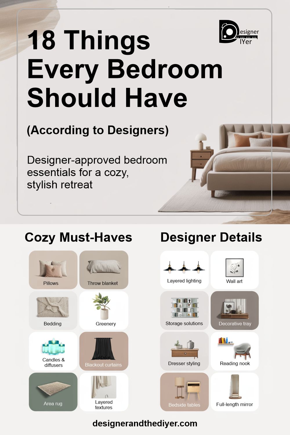 Whether you’re working with a large master suite or a small bedroom, this guide breaks down 18 things every bedroom needs — plus tips on how to style them like a pro.