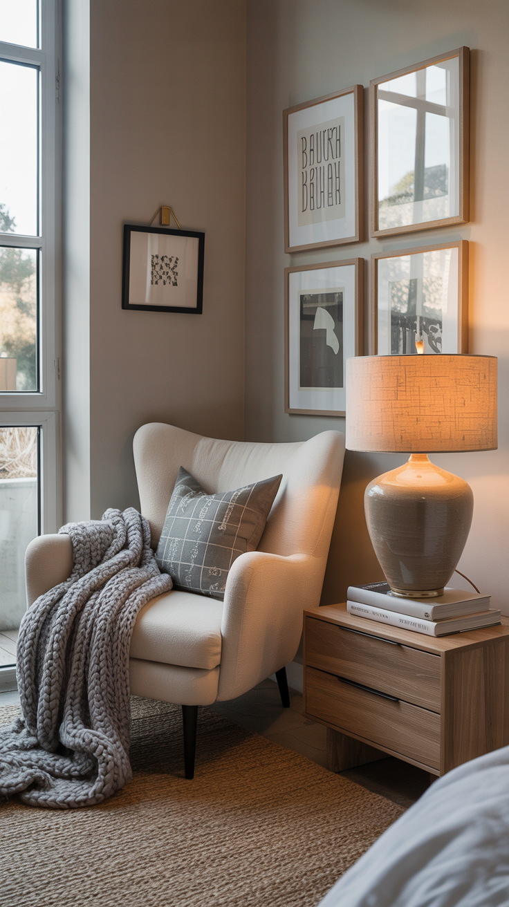 SEO Keywords: bedroom reading nook ideas, cozy corner decor, lounge chair styling