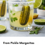 The “Pickle Fix” trend refers broadly to pickles and pickle‑brine (or similar briny, vinegary flavors) appearing in unexpected places: cocktails, desserts, savory snacks, and even garnishes. According to Pinterest’s 2025 predictions, searches for “pickle margarita” rose +100%, “fried pickle dip” +80%, and even “pickle cake” +45%.