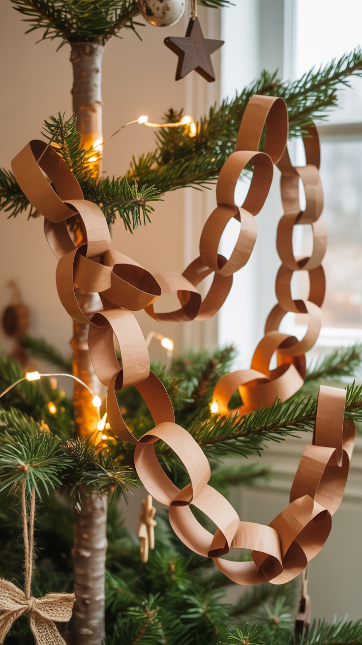 Paper chains are simple, colorful, and fun for kids. They add a playful vibe to your tree.