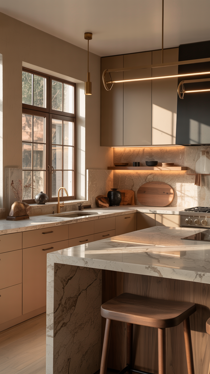 These hues feel timeless yet fresh, providing warmth without visual clutter. Beige and taupe tones are layered with warm whites, creating depth and softness. Homeowners are embracing tonal harmony — pairing cabinetry, walls, and trim in subtle variations of the same hue for a calm, cocooned effect.