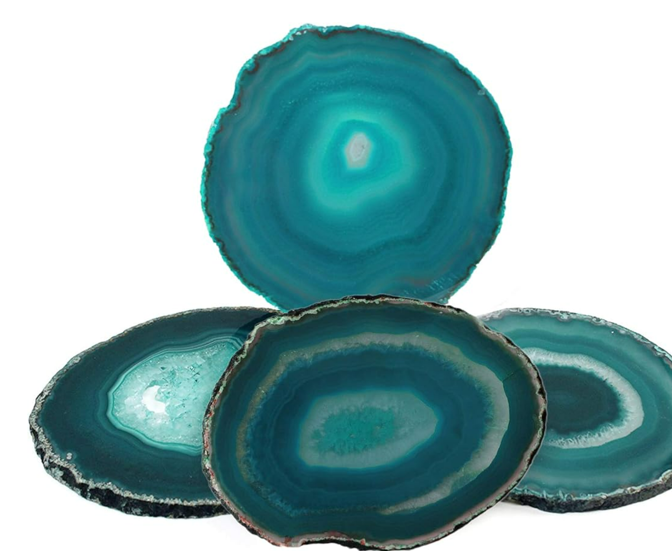 AMOYSTONE Teal Agate Geode Coasters, Set of 4