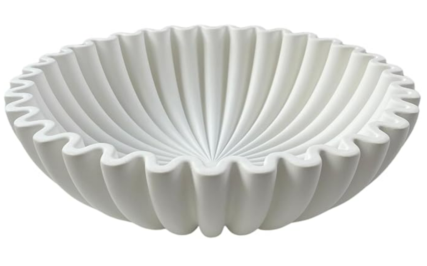 This fluted concrete vessel is a testament to how affordable pieces can mimic high-end design. I love the look of this bowl so much, it is in heavy rotation for home staging proejcts. It has the look and feel of thassos marble, appearing far more expensive than its actual price tag. Whether placed on a stack of books or directly on a table, it adds a sculptural element and can hold anything from small nibbles to a single floating peony. I love that it adds visual weight and sophistication to a space.