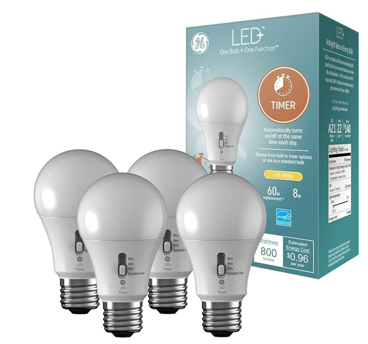 Automate your home lighting with GE timer light bulbs. These smart bulbs can be set to turn on and off at the same time daily, perfect for indoor lamps, creating the illusion of an occupied home or simply providing consistent lighting. For exterior lights, GE also offers dusk-to-dawn bulbs that automatically adjust to natural light conditions. These bulbs offer convenience, energy efficiency, and enhanced security, making them a smart upgrade for any home.