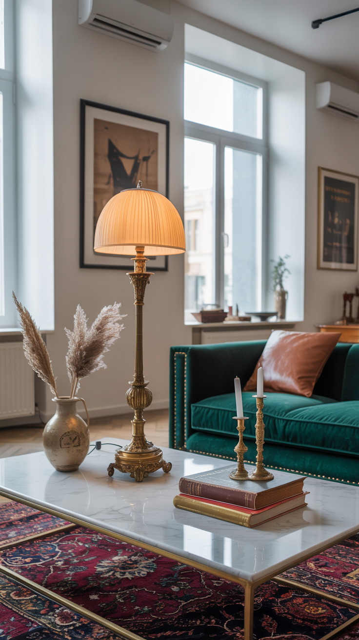 • Mix in modern seating: A sleek chair in velvet or a contemporary coffee table adds freshness.