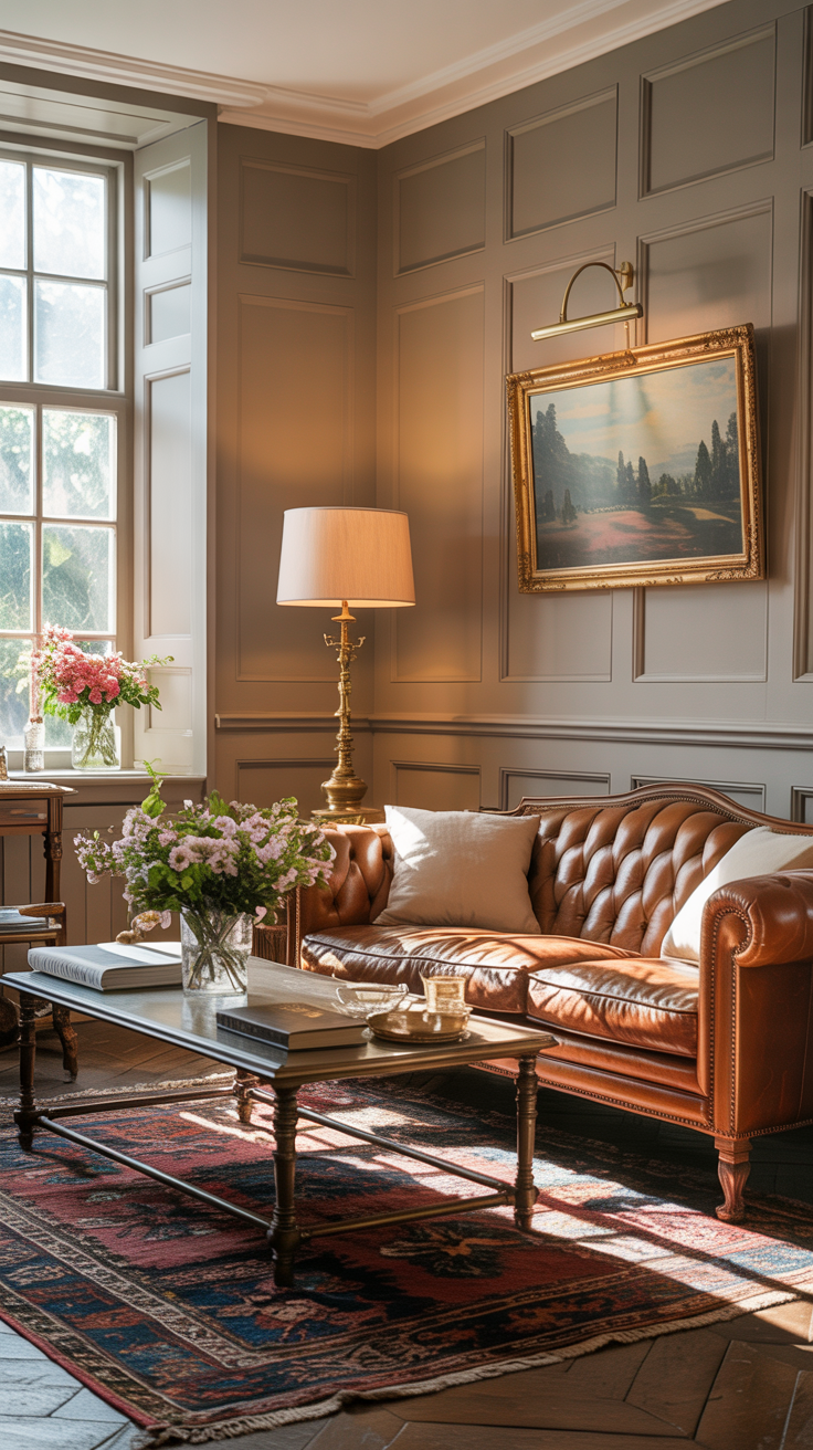 • Start with anchor pieces: A vintage leather chesterfield or classic wingback give you immediate heritage tone.