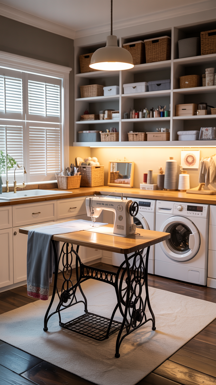 The Laundry-Craft Room Combination is a natural fit for creative households. Both spaces benefit from generous countertop space, good lighting, and ample storage. A sewing station or crafting table can be integrated into the cabinetry design, with dedicated storage for fabric, thread, scissors, and other supplies. The washer and dryer become almost incidental background appliances that run while you work on a project. Some designers have taken this concept to its logical extreme, creating rooms that feel primarily like creative studios that happen to contain laundry machines. I’m really loving this idea, personally!