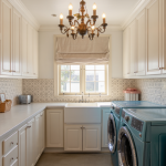 The lighting in a luxury laundry room is a design element in its own right. Chandeliers have become a signature touch, bringing glamour to a utilitarian space. Pendant lights above the sink, under-cabinet task lighting, and large windows that flood the room with natural light all makeit feel like a well-appointed studio rather than a service room.