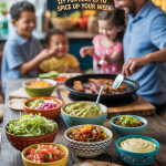 Interactive Setup: Taco boards and DIY stations make mealtime fun.