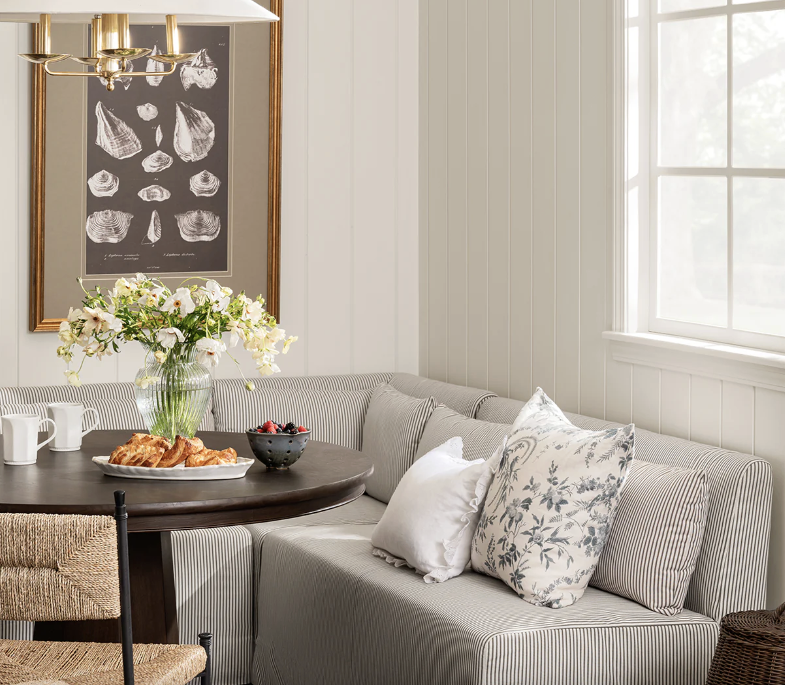 Stripes have been used in upholstery for centuries, from the awning-striped banquettes of Parisian brasseries to the ticking-stripe benches of English country kitchens. They carry with them an inherent sense of structure and order that makes them SO well-suited to the clean lines of a built-in nook.