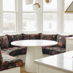 From the pages of Architectural Digest to the feeds of fearless designers, the breakfast nook is experiencing a dramatic reinvention. Upholstery is no longer an afterthought, a neutral backdrop to a centerpiece table or a statement pendant light. I’m seeing a lot of moody florals in deep burgundy and forest green. Bold, graphic stripes in navy and ivory, or black and terracotta. Jewel-tone velvets in sapphire, amethyst, and emerald. The nook, once the most understated corner of the kitchen, is becoming the most expressive room in the house.