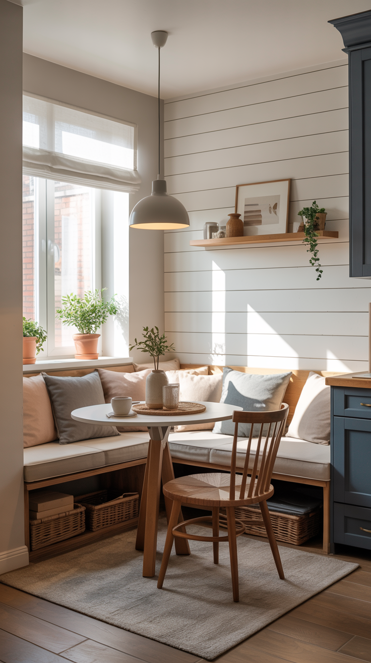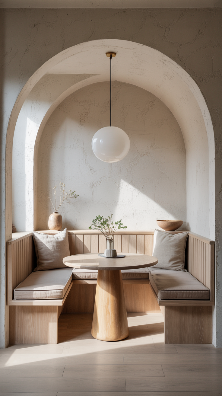 The most sophisticated stripe applications in contemporary nook design tend to involve a degree of contrast, not just between the two colors of the stripe itself, but between the stripe and the surrounding environment. A bold navy-and-cream stripe on the banquette reads as particularly striking against a kitchen with warm, natural wood cabinetry and terracotta tile. A black-and-white stripe becomes almost architectural when paired with dark painted walls and brass hardware. The stripe, in other words, does not need to match its surroundings. It needs to respond to them, to create a dialogue between the seat and the space.