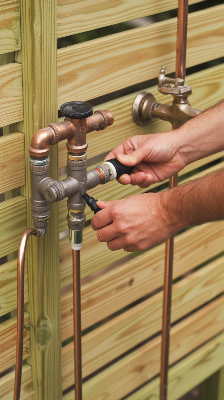 Finally, install your chosen plumbing fixtures. If you are using a simple hose connection, mount the showerhead and valve assembly to one of the posts or a dedicated mounting block. If you are running permanent plumbing, ensure the pipes are securely strapped to the framing and that all connections are watertight before turning on the supply.