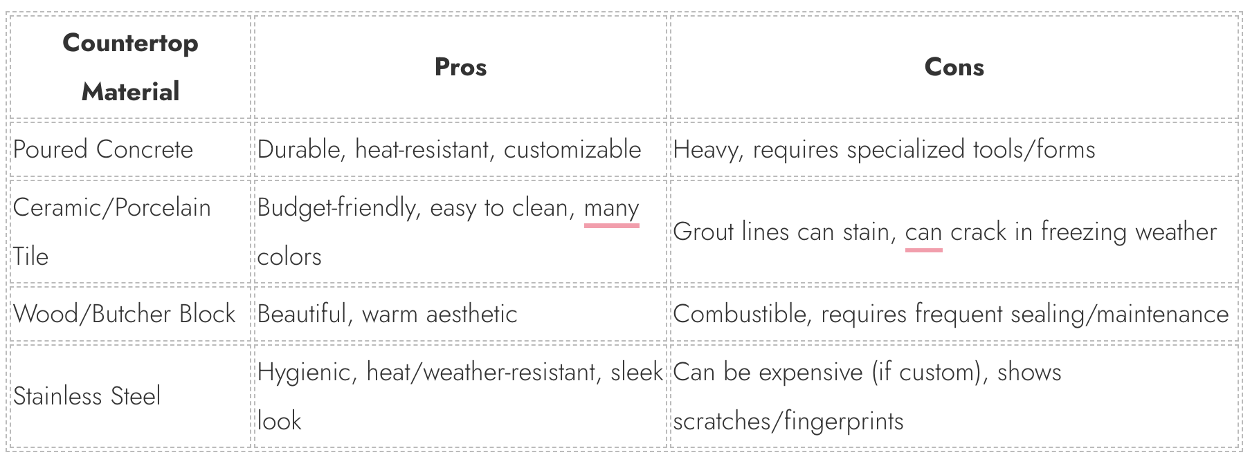 The countertop is one of the most important features of your grill station, providing essential prep space and contributing to the overall aesthetic.