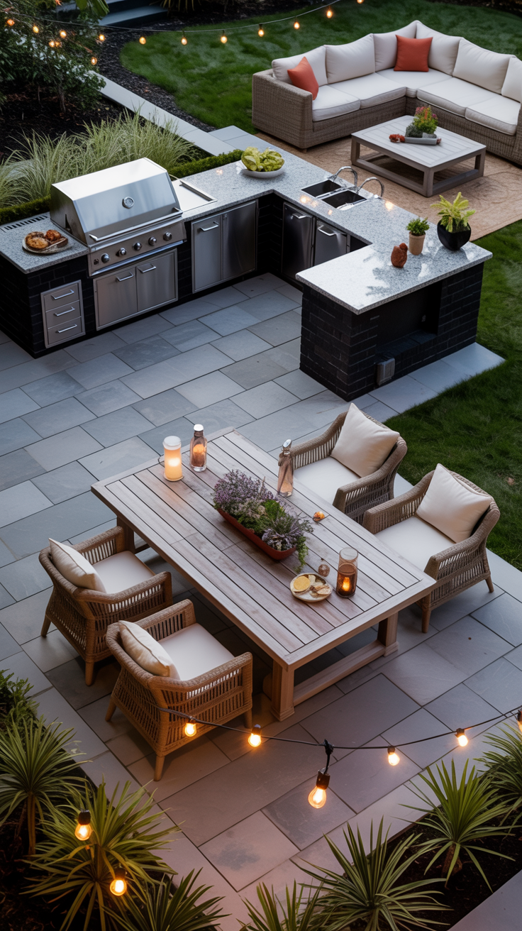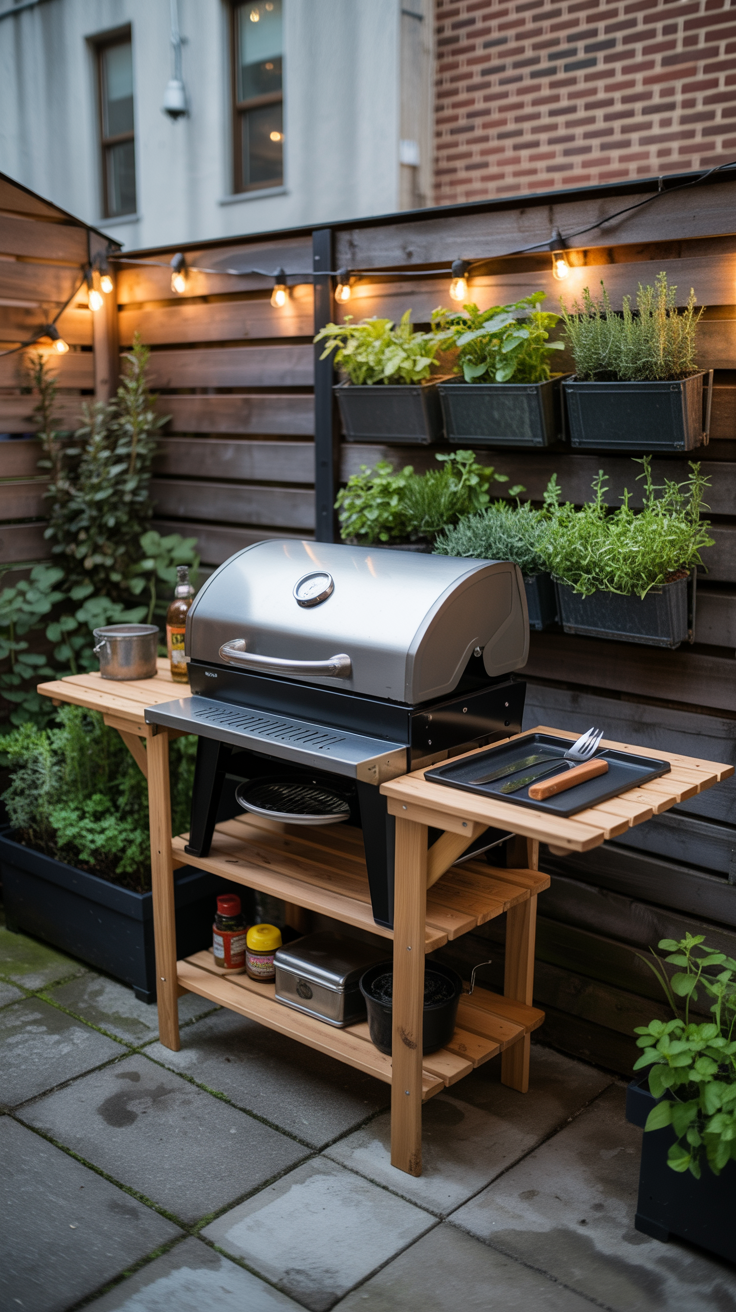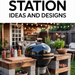 - Lighting: If you plan to grill after dark, ensure your station is well-lit. You can install hardwired outdoor lighting, use battery-operated LED grill lights, or hang string lights above the cooking area.