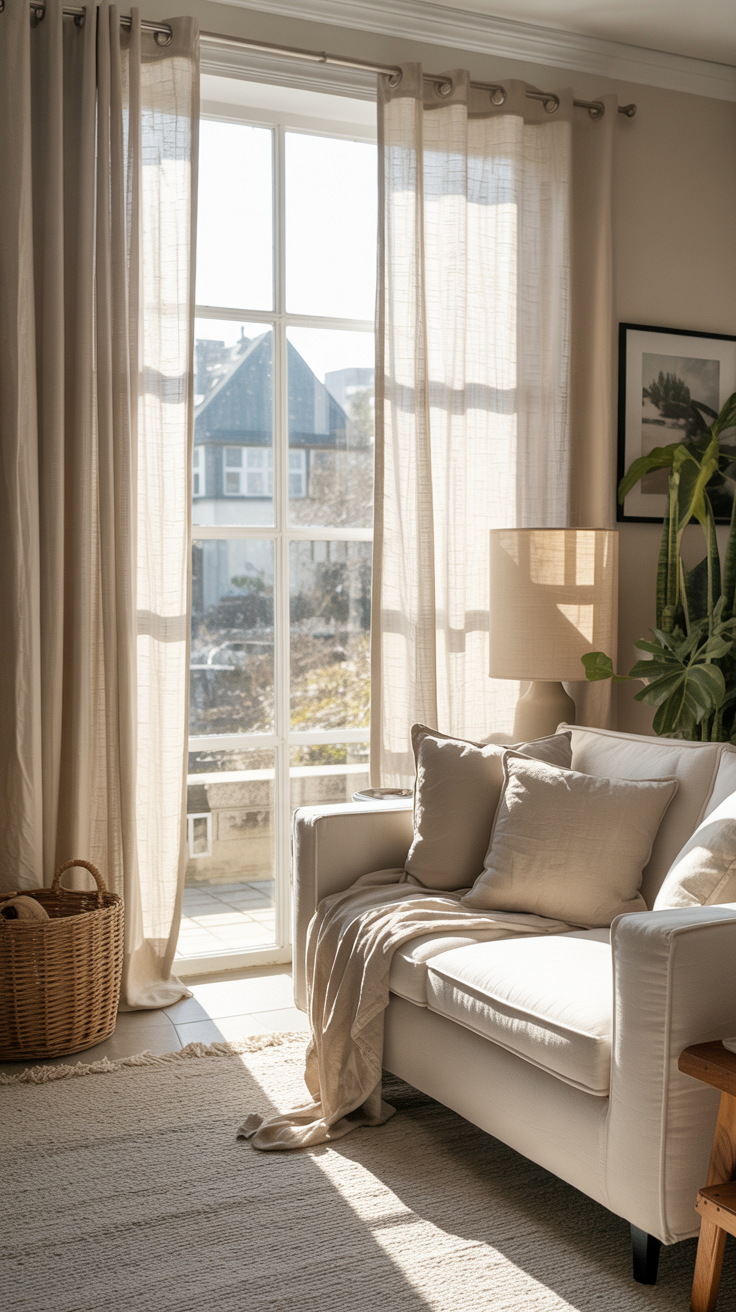 When it comes to the curtains themselves, ditch the shiny, synthetic fabrics that look cheap and clingy. Opt for natural textures like linen, cotton blends, or even a heavy velvet for a cozy, dramatic look. Even inexpensive curtains can look custom if you hang them correctly, use enough panels (they should look full, not stretched tight), and take the time to steam out the wrinkles. It’s a weekend project that completely changes the architecture of a room. If you want to take it a step further, add bamboo or woven wood shades behind the curtains for a layered, designer look that adds incredible texture and warmth. The combination of soft fabric and natural wood is always a winner.